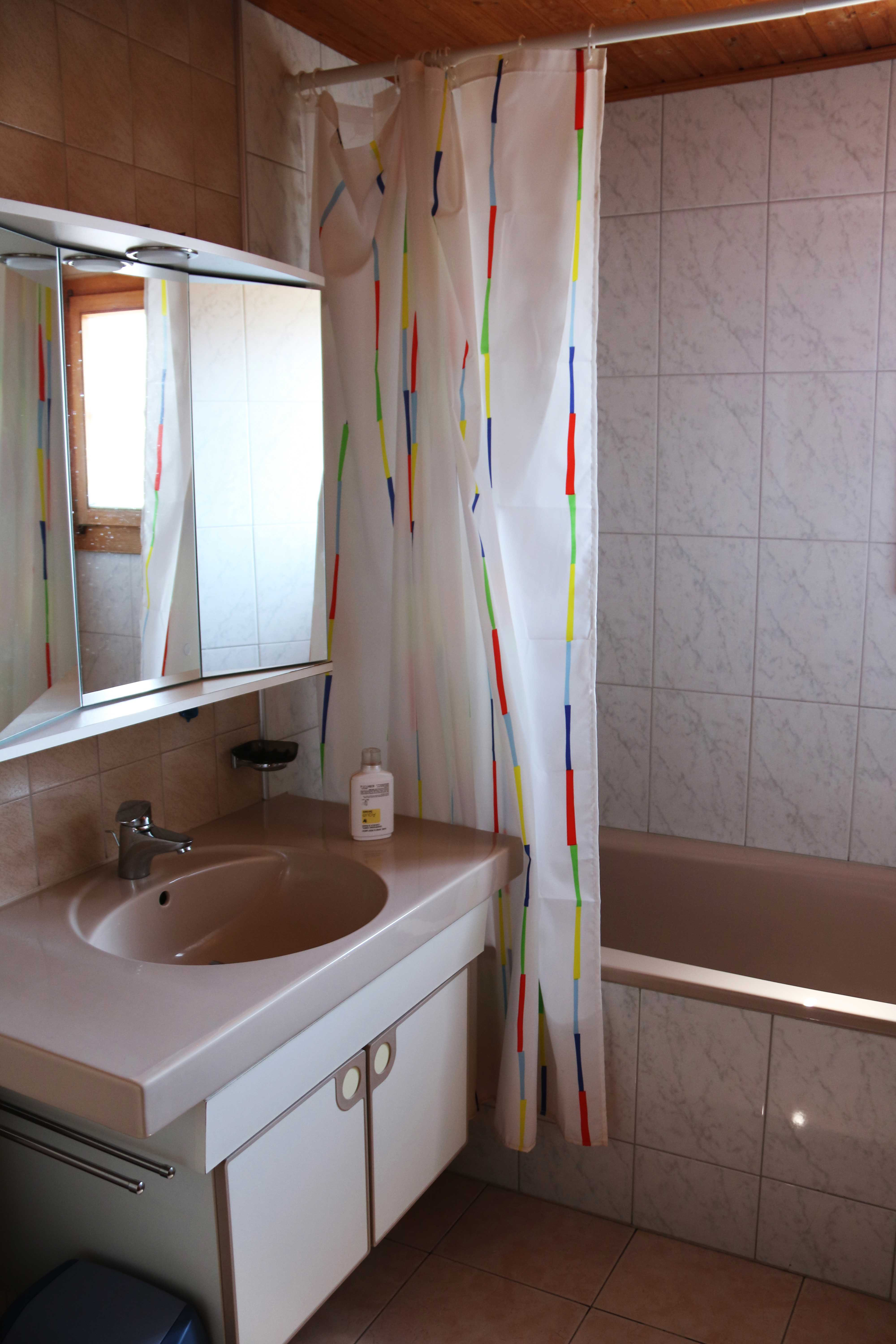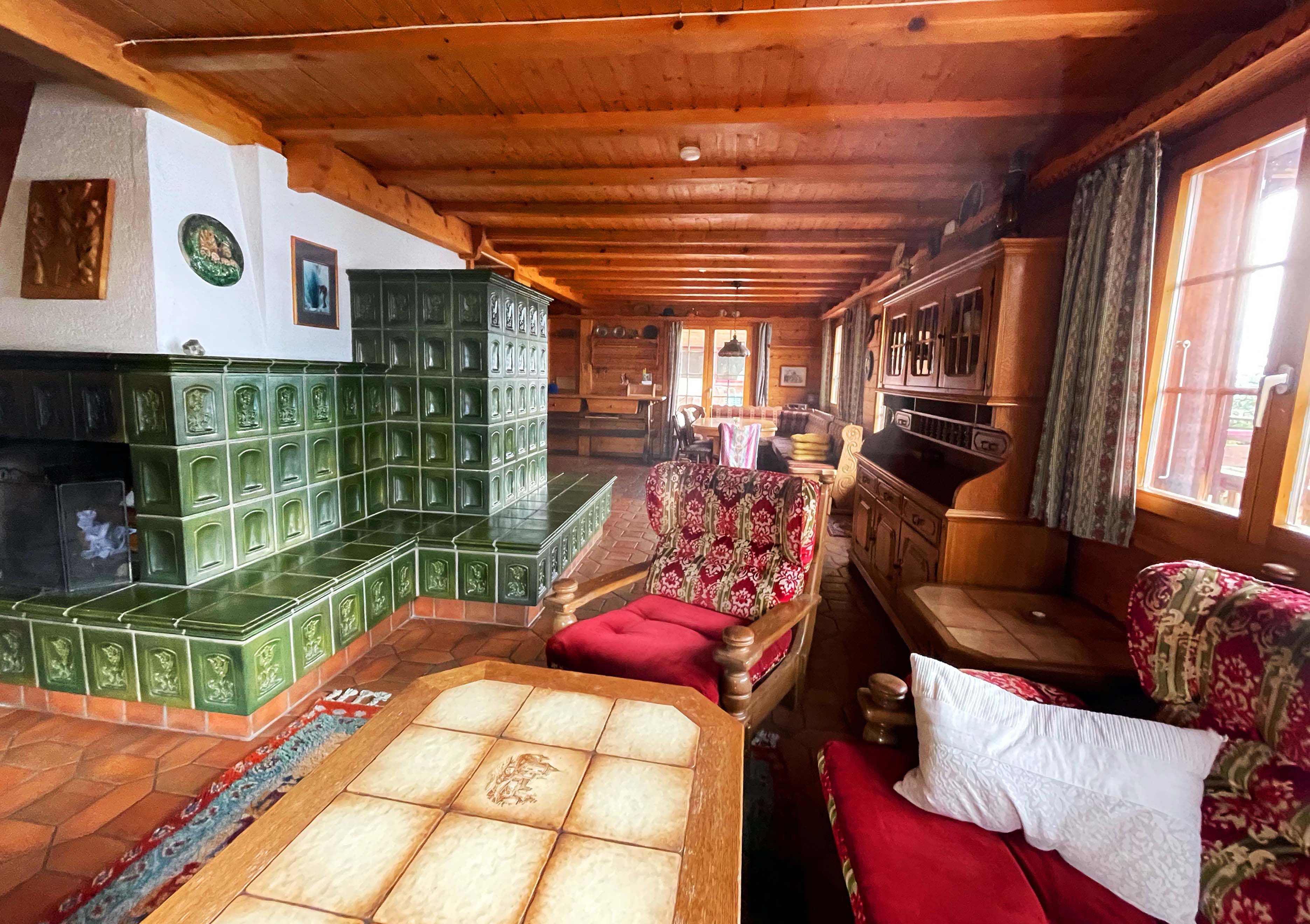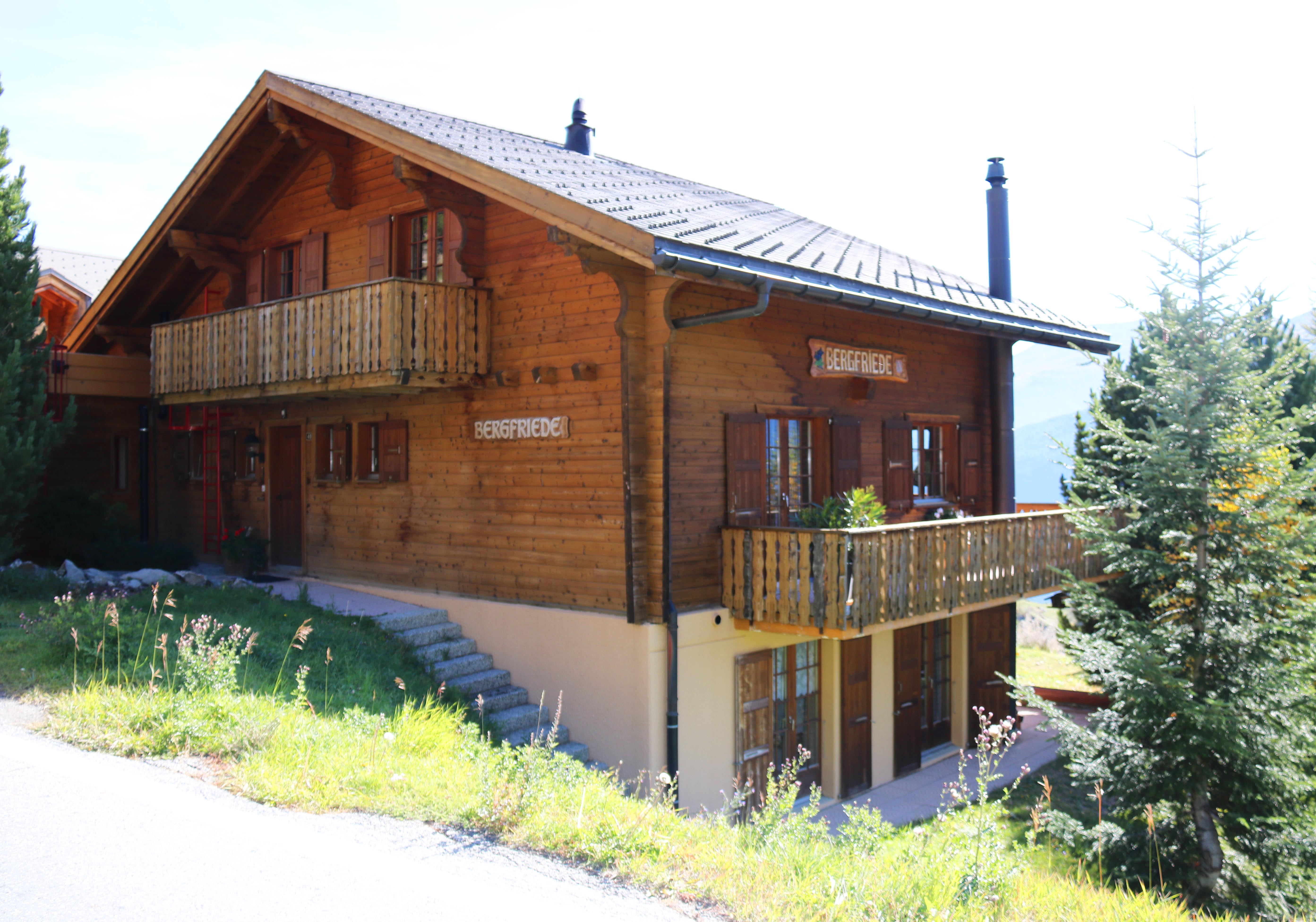 Das typische Schweizer Chalet "Bergfriede" bietet Platz für bis zu 14 Personen und verfügt über einen grossen Wohnbereich mit Kachelofen und offenem Kamin, eine geräumige und voll ausgestattetes Küche mit Esstisch, zwei Bäder und vier Schlafzimmer. Eines der Bäder verfügt über eine Dusche, das andere über eine Badewanne mit integrierter Dusche. Die Schlafzimmer haben alle ein Waschbecken und einen Spiegelschrank. Ausserdem verfügen alle Zimmer über einen Balkon mit spektakulärer Sicht auf die umliegende Bergwelt. Das Haus ist ideal geeignet für Familientreffen oder einen Urlaub mit Freunden.