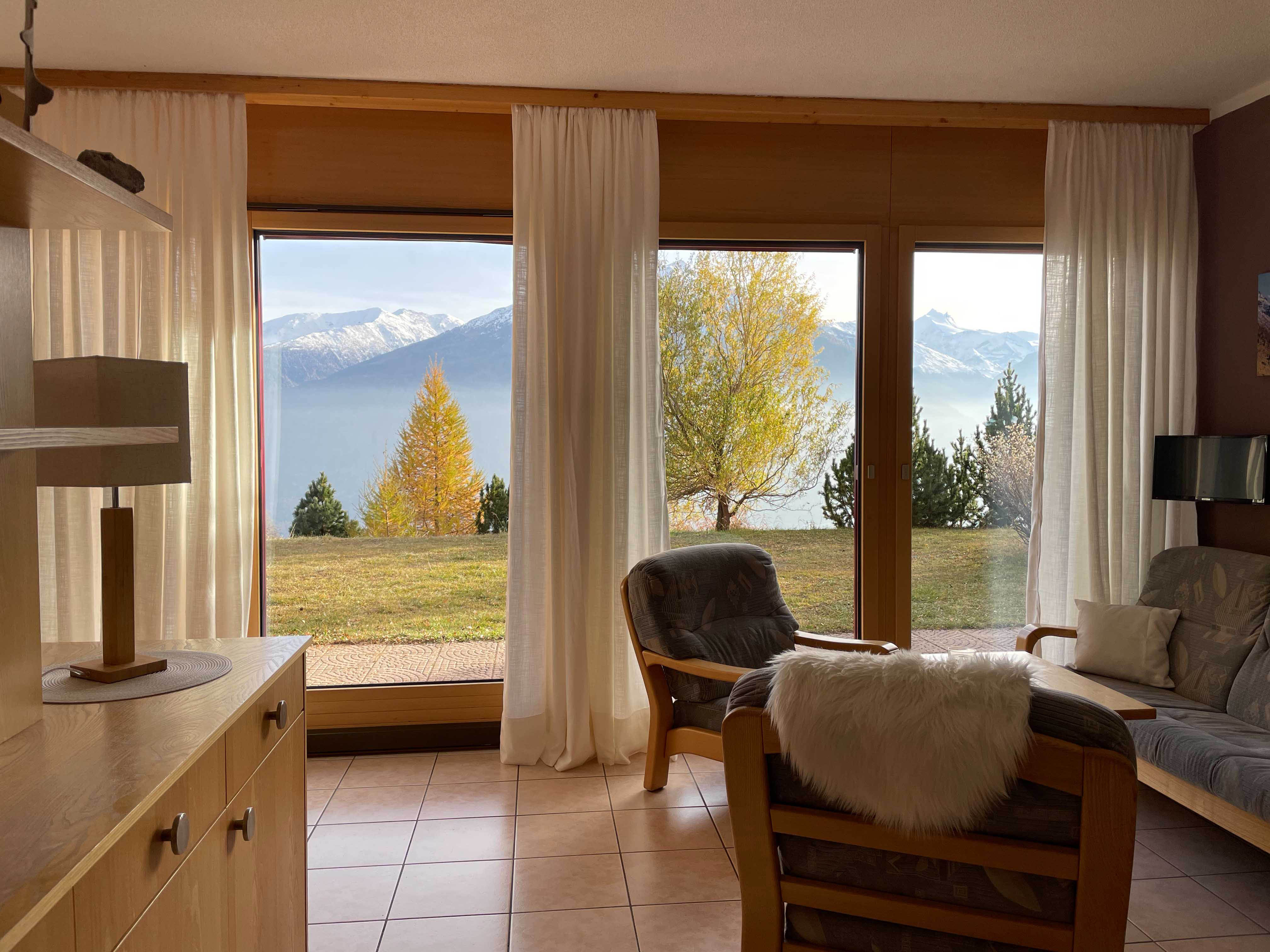 Unser wunderschönes Anwesen befindet sich am Ortsausgang des urigen Bergdorfs Engersch, 1.500 m hoch über dem Rhonetal. Die Aussicht auf das gegenüberliegende, ganzjährig mit Schnee bedeckte Weisshorn und viele weitere über 4.000 m hohe Berge sowie ins Tal ist atemberaubend und unvergesslich.