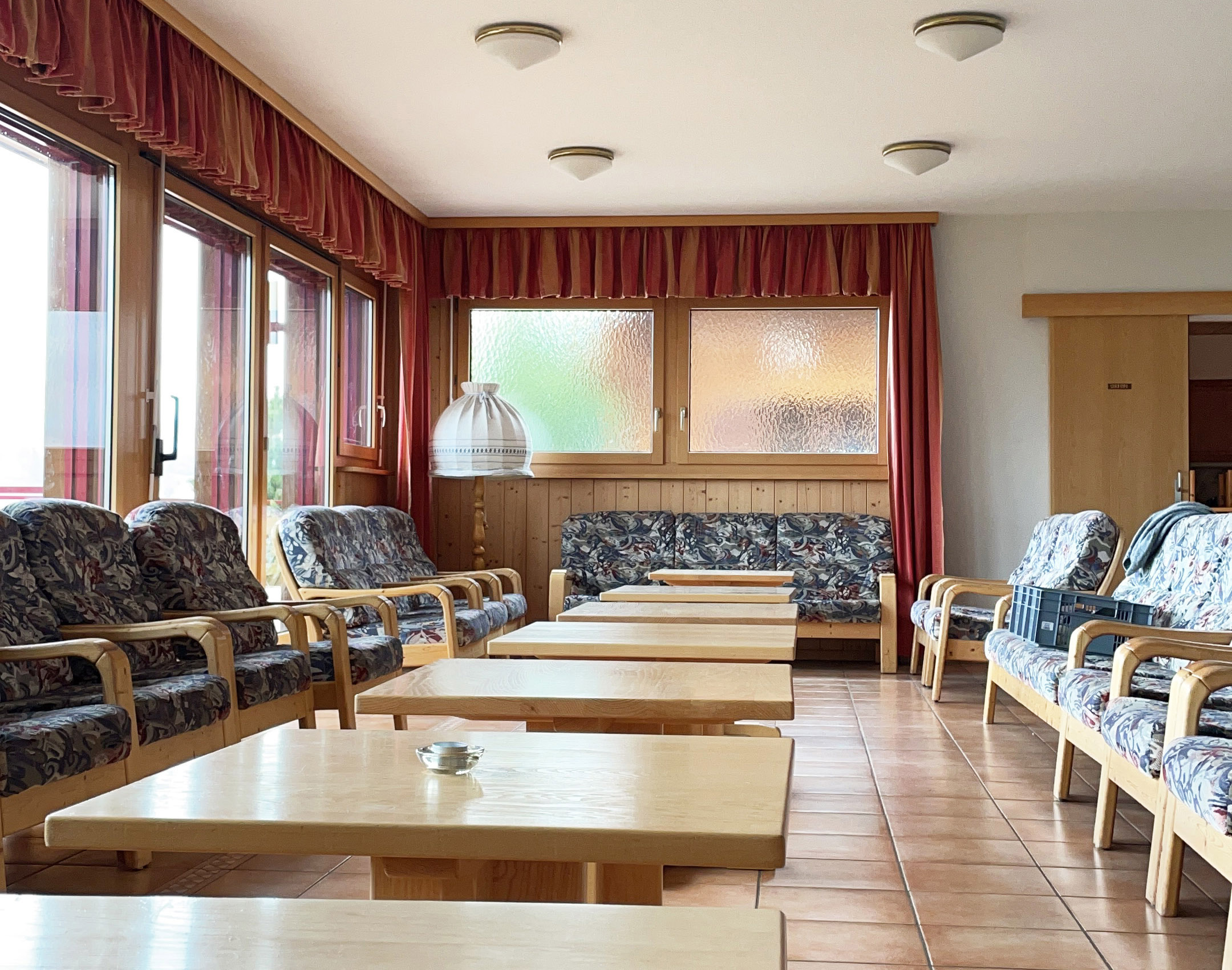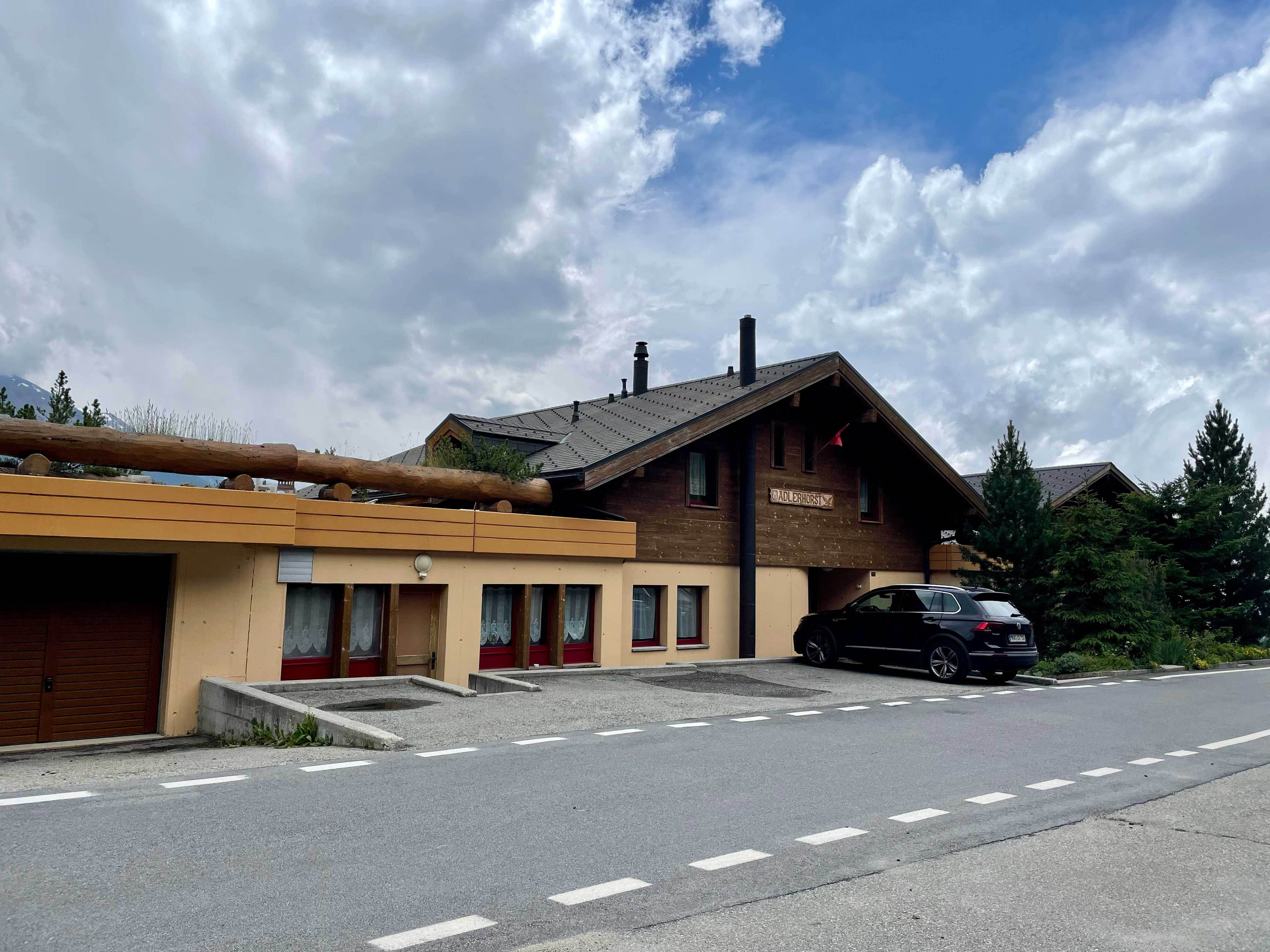 Das sonnenlichtdurchflutete Berghaus "Adlerhorst" bietet in acht Zimmern und zwei Ferienwohnungen Platz für bis zu 37 Personen. Neben den Zimmern verfügt das Haus über einen grossen Aufenthaltsraum mit Kamin, eine geräumige und voll ausgestattete Küche, einen Speiseraum, einen Spiel- oder Seminarraum, eine Sauna, einen Veloraum und zwei Gäste-WCs. Die Talseite des Hauses wird komplett von der Terrasse umrahmt. Das Haus ist ideal für Familienfeiern wie Hochzeiten und runde Geburtstage oder einen Urlaub mit vielen Freunden geeignet. Ausserdem bietet es sich gut für Seminare oder Veranstaltungen an. Die beiden Ferienwohnungen (für drei bzw. vier Personen) sind jeweils mit einer eigenen Einbauküche, einem Essplatz sowie Bädern mit Dusche und WC ausgestattet. Sie sind der perfekte Ort für Paare oder Familien die von hier aus zu sportlichen Aktivitäten starten oder einfach einmal ein paar Tage die Ruhe und Abgeschiedenheit der umliegenden Bergwelt geniessen wollen.