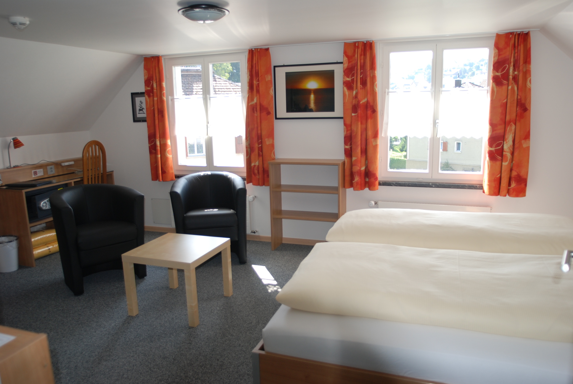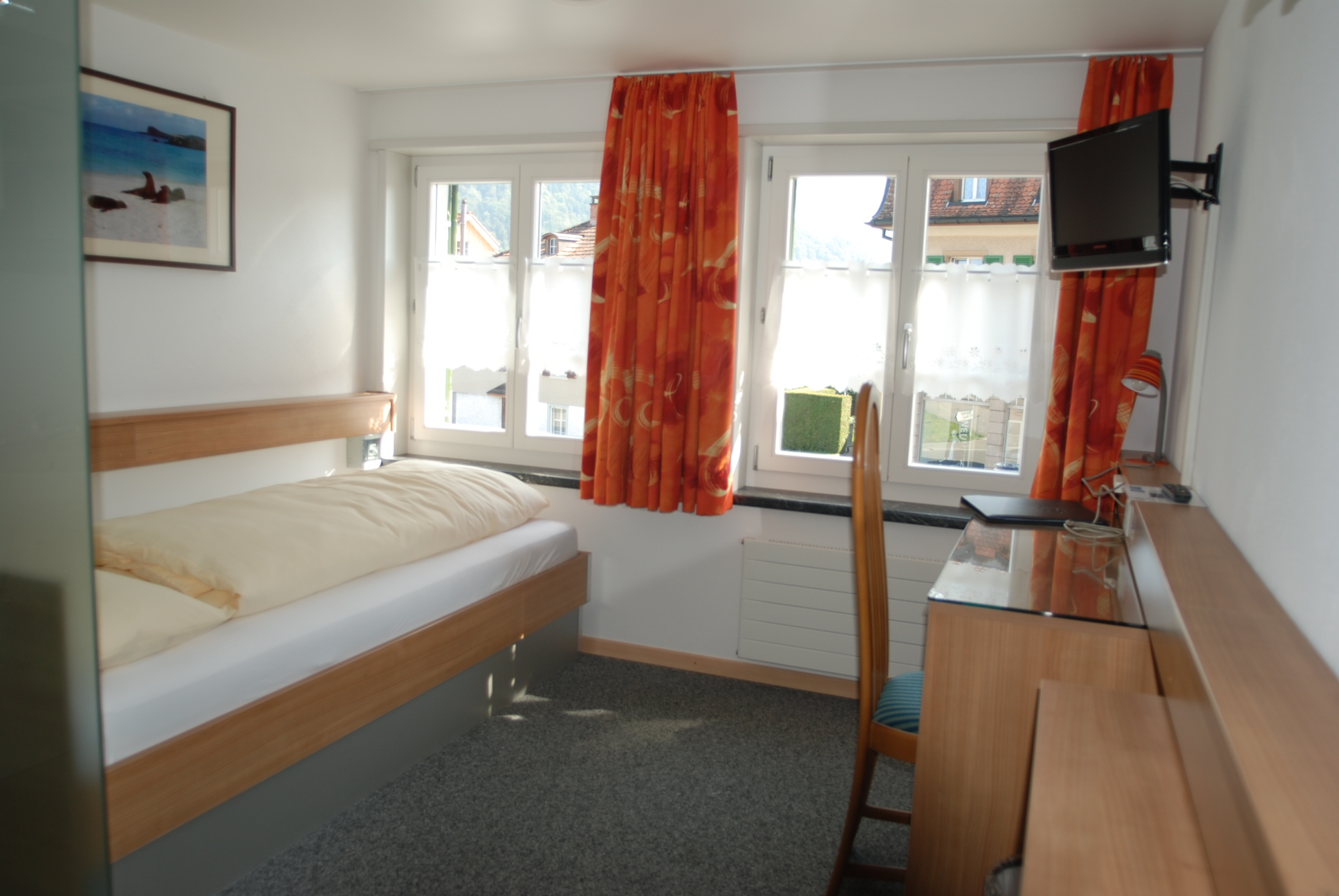 Die Pension empfängt dich in einem Gebäude im Toggenburger Stil. Jedes Zimmer ist einfach eingerichtet und schallisoliert, verfügt über einen Flachbild-Kabel-TV und ein eigenes Bad mit Dusche. WLAN nutzt du kostenfrei. Freue dich auf ein reichhaltiges Frühstücksbuffet mit Brot und Gebäck aus der hauseigenen Bäckerei. Auf Wunsch füllen wir unseren Sonnen-Rucksack mit einer Zwischenverpflegung, Getränk und einer Toggenburger-Spezialität.